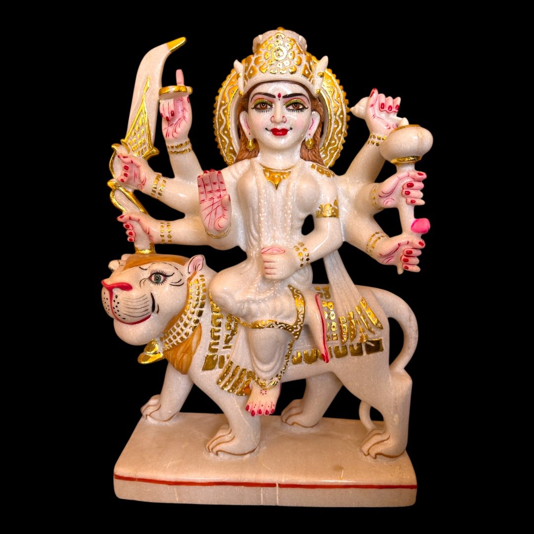 Bring home divine energy, peace, and protection with this stunning Maa Durga marble murti.